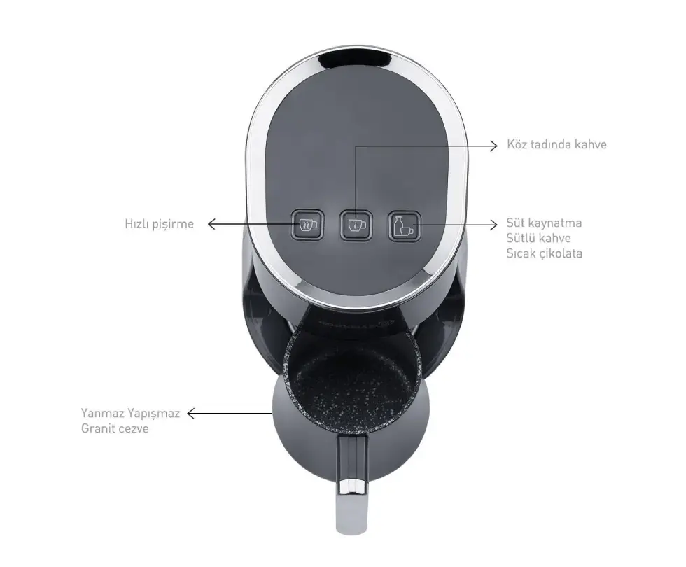 قهوهساز Authentic با طراحی نوآورانه خود شما را شگفتزده خواهد کرد. این دستگاه قادر است هم قهوه ترک و هم قهوه با شیر تهیه کند. به لطف جنس خاص قهوهجوش با اثر گرانیتی، شیر در آن نمیسوزد و به بدنه نمیچسبد. اگر تنها به شیر داغ نیاز دارید، این دستگاه بهراحتی این کار را برای شما انجام میدهد.